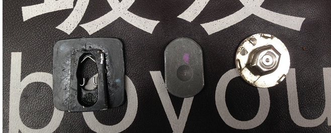 案例2,粘接过程中超过30秒后依旧没有完全干透,镜座脱落后镜座粘接面残留胶在常温下不是很硬可以用刀片轻轻割动。