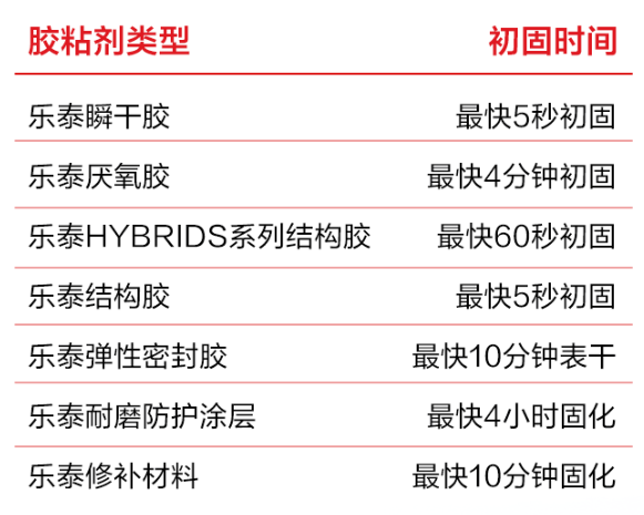 胶粘剂因其化学成分和固化方式不同固化时间存在很大差异: