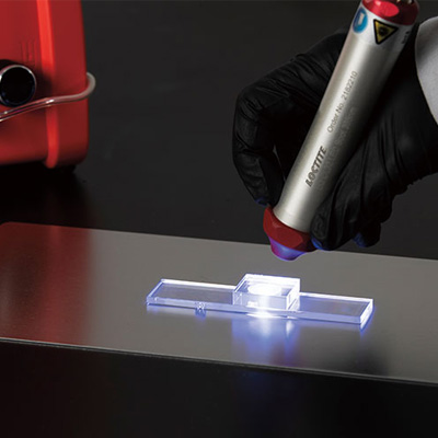 来做一个产品之间粘接的动作。UV胶是液体状态,需让其转变成固态 才能达到粘接效果 目前,市面上有2种固化方式:一是传统的热固化,另一种UV固化。
