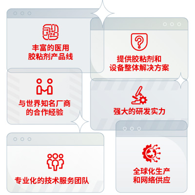 30多年以来,被全球多个国家或地区的医疗器械制造商所选择的快连粘合剂,也助力这些制造商们一一实现: