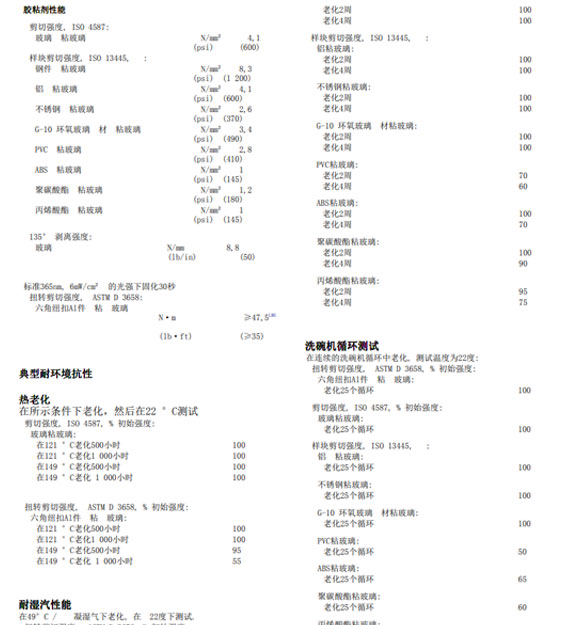 LOCTITE 3492是一种透明、低粘度、改性丙烯酸酯液态胶粘剂,365nm紫外线照射数秒后固化,形成耐冲击胶层,具有优异的防潮性或防水性。通常用于玻璃或其它材料的粘接、密封或灌封应用。对长时间的湿度或浸水具有出色的耐受性。典型应用包括玻璃与其自身或其他材料的粘合和密封或灌封应用,例如粗糙表面装饰玻璃,模制玻璃餐具或汽车照明组件。如需快连3492胶水TDS、MSDS可以咨询