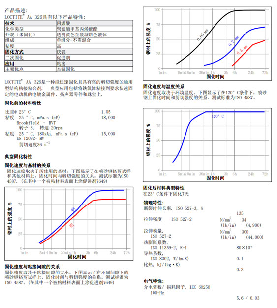 LOCTITE 326是一款黄色至琥珀色、无需混合的结构胶粘剂,适合用于磁钢粘接。它对不同类型的铁氧体具有良好的附着力,可3分钟固定,剪切强度为 15 N/mm²。它可用于温度高达+120℃的环境中。需要 LOCTITE SF 7649 进行活化。快连326是一种能快速固化且具有高的剪切强度的通用型结构粘接粘合剂。典型应用包括将铁氧体粘接到要求快速固定的电动机的电镀金属件,扬声器零件和珠宝上。如需快连326胶水TDS、MSDS可以咨询