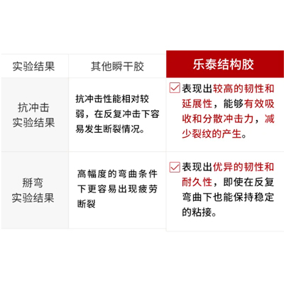 结构胶能有效吸收和分散突发的冲击力,从而降低因冲击导致的粘合接头裂纹或断裂的风险。