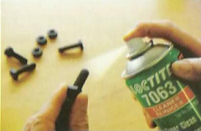 1.在螺栓装配之前要经过除油、清洁、干燥,建议使用快连SF7063。快连SF7063为溶剂型通用清洗剂,具有挥发快、残留物少的特性,可用于清除大部分油污,灰层,金属切削液,润滑液等工业污垢。