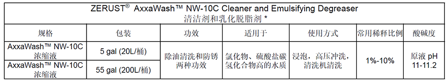 一、ZERUST® AxxaCleanTM and AxxaWashTM 清洁剂产品参数: