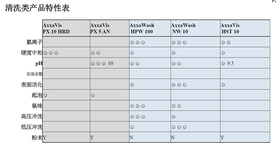 四、ZERUST® AxxaCleanTM and AxxaWashTM 清洁特性表