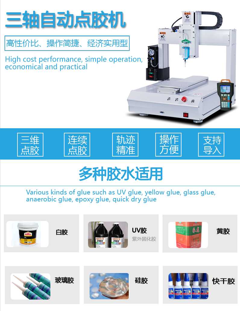 可做空间点,线,圆弧,等任意形状点胶