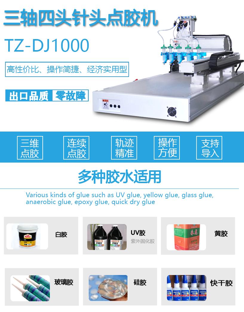 产品用途:固科/Glueforce定制l非标四头针筒点胶机TZ-DJ1000 适用于工业生产的各个领域:手机按键、开关、连接器、电脑、数码产品、电子玩具、喇叭、蜂鸣器、电子元器件、电路板、LCD液晶屏、继电器、扬声器、晶振元件、LED灯、机壳粘接、光学镜头、机械部件密封.