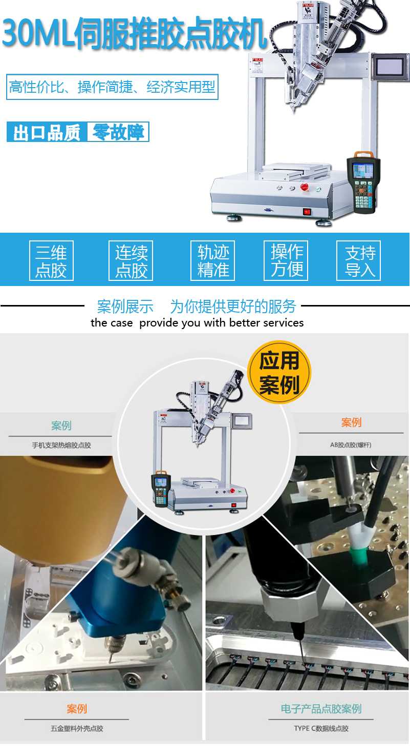 固科/Glueforce 30ML伺服推胶点胶机适用于不同生产制造领域,广泛应用于精密五金行,塑胶行业,电子行业,家电行业行业等。适应胶水面广泛,如UV胶、环氧树脂,硅胶,AB胶、黑胶、白胶、PU胶、瞬间胶、红胶、锡膏、散热膏、聚胺脂等。