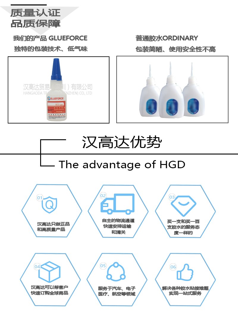 5. 促进剂可以用于溢胶部位的固化,喷涂或者滴在多余的胶表面。